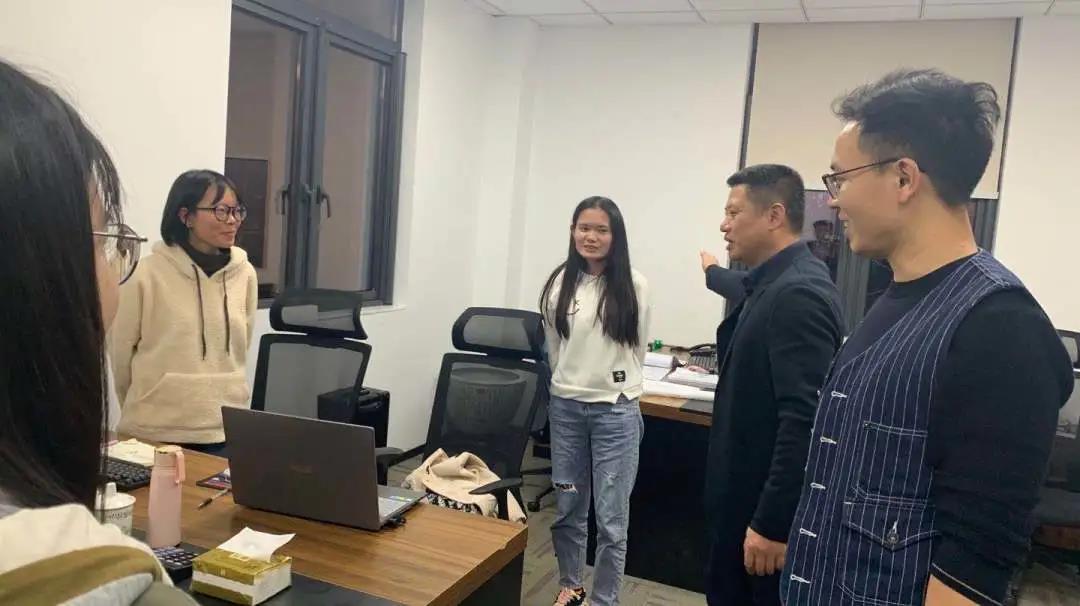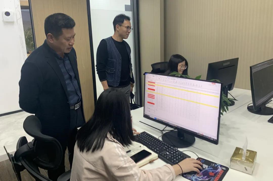 在實(shí)習(xí)生代表粟夢(mèng)同學(xué)熟悉的指引下,皮建輝博士、柳井老師先后參觀了我司資料部、設(shè)計(jì)部、合約部,親切的看望了在各部門培訓(xùn)實(shí)習(xí)的同學(xué)們;